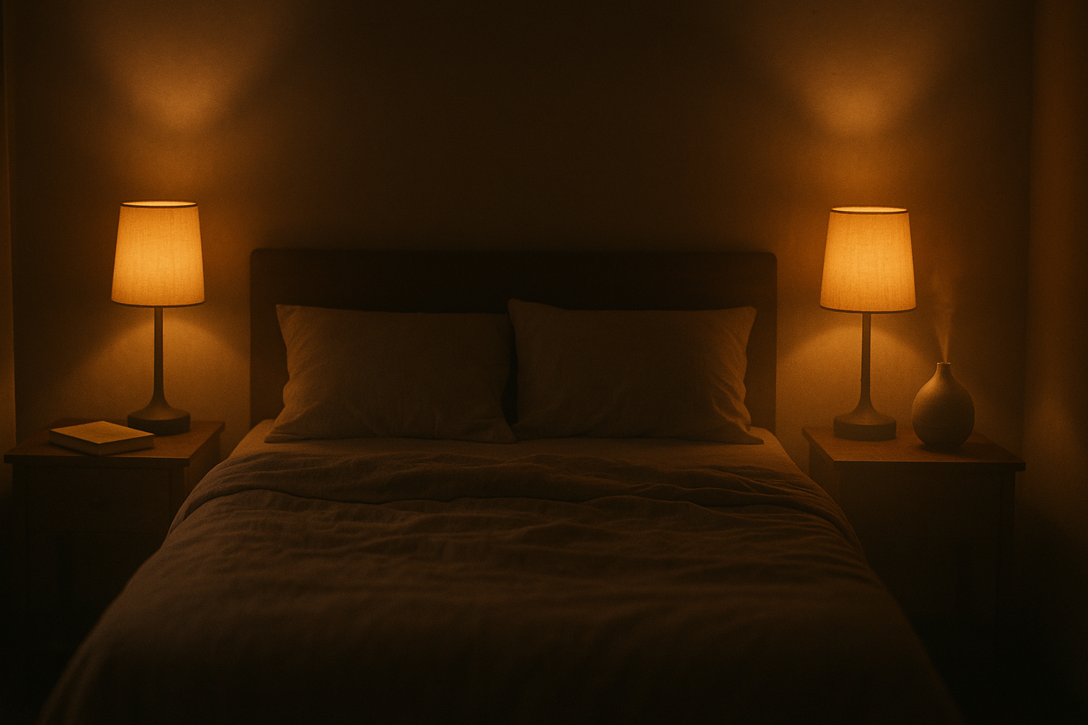 Lavender or cedarwood in a diffuser. Low‑volume pink noise or a calm playlist.